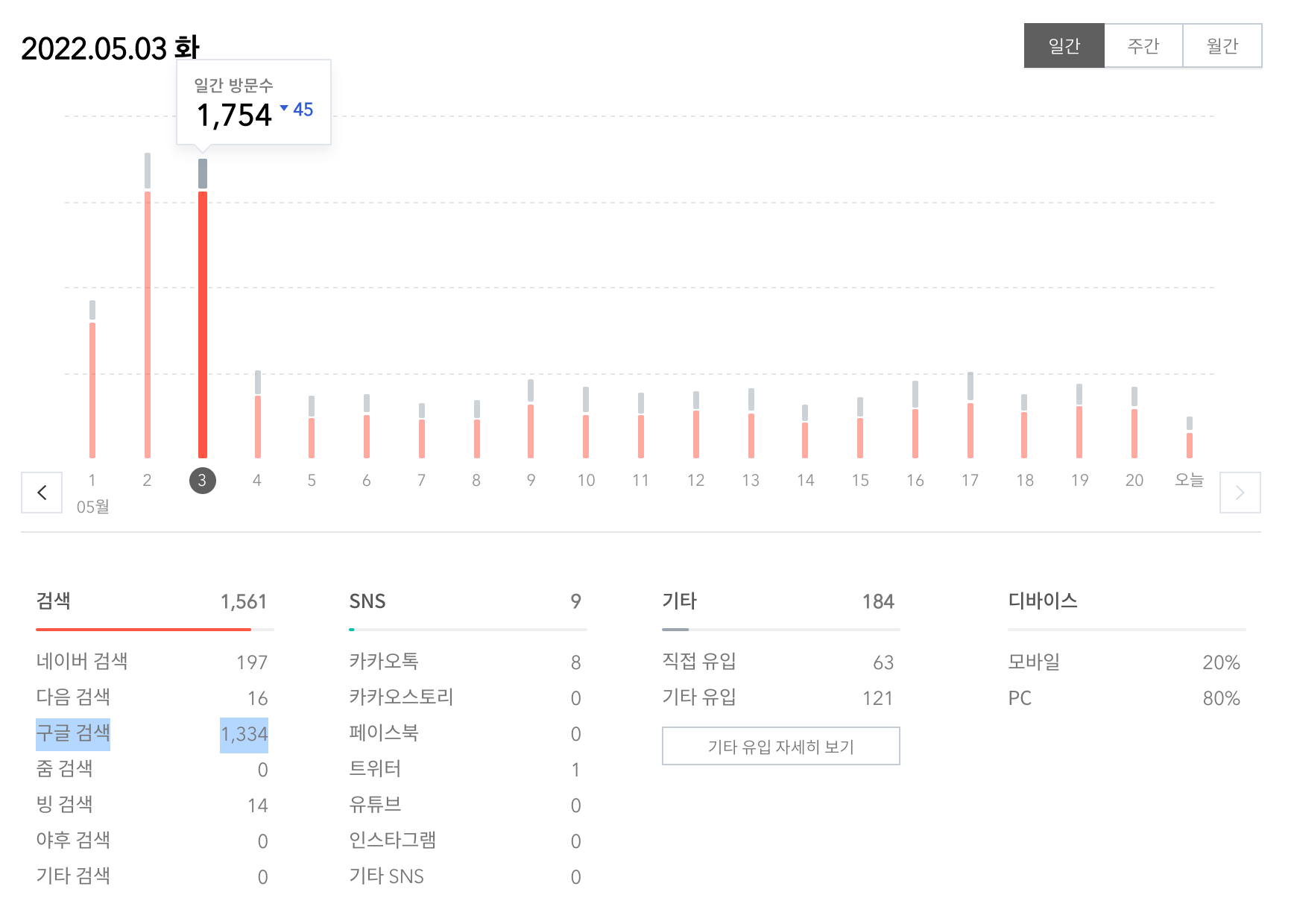 지난 포스팅에서 구글 검색에서의 유입이 거의 없어져서 방문자수가 폭락했었다는 글을 적었었습니다. 방문자수 폭락 ㅠㅠ 구글 검색에서의 유입 대부분이 사라짐 제 블로그 방문자 수가 5월 4