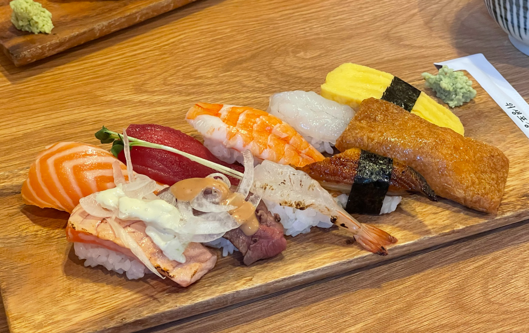 두툼하고 푸짐한 모듬 초밥이 단돈 만원? 얼마 전 고향인 대구에 갔다가 부모님과 동네 초밥집에 들렀습니다. 부모님이 추천하시기에 갔는데 가성비가 정말 좋더군요. 사진으로는 잘 안 보이지만 생선이 두툼합니다.