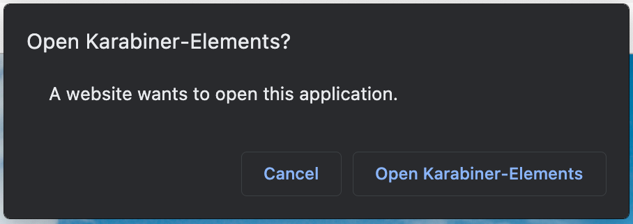 다음과 같은 창이 나타나면 "Open Karabiner-Elements"를 누릅니다.