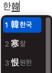맥에서 한글을 한자로 변환하려면 Option + Enter를 누르면 됩니다.