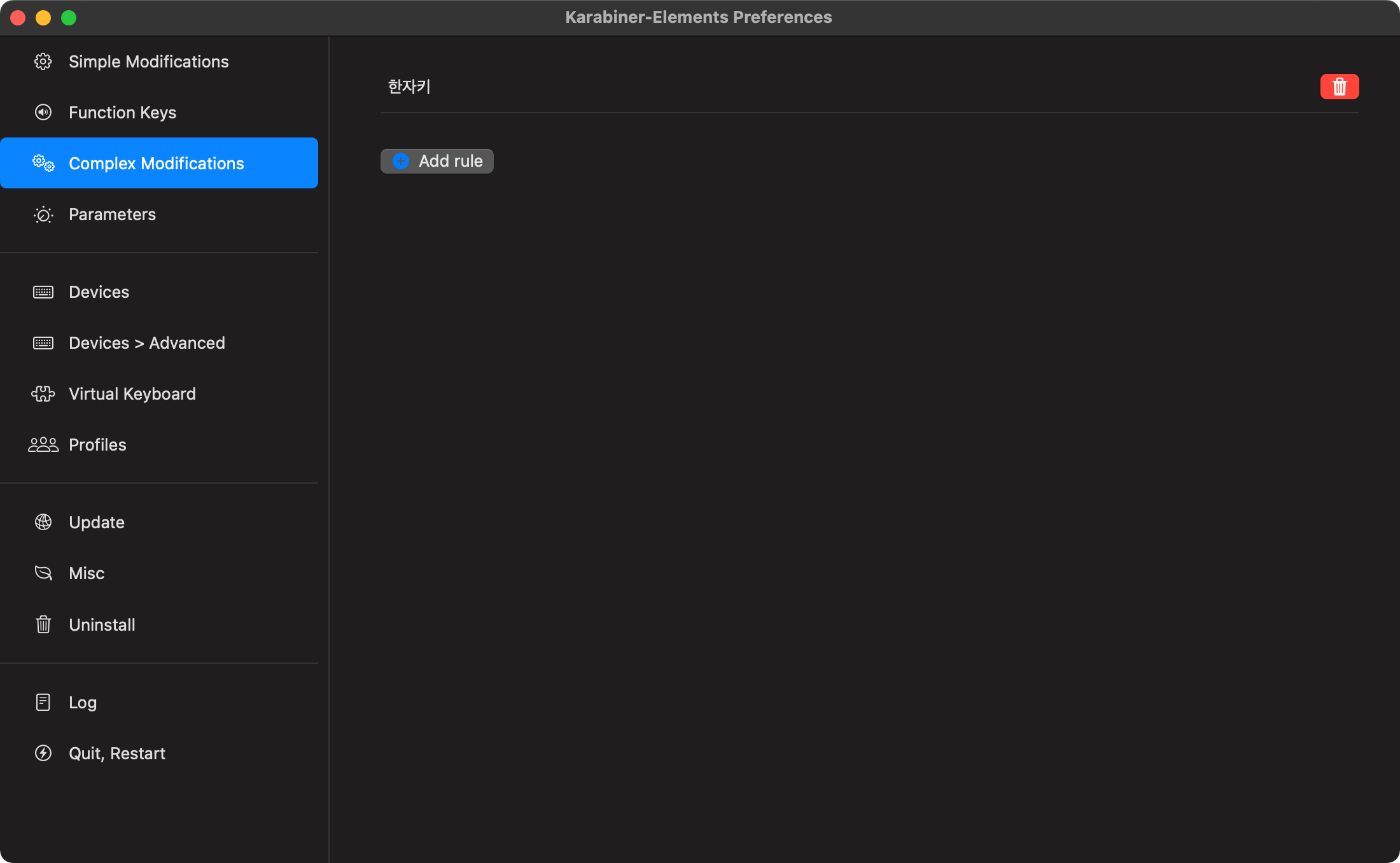 한자 키가 있는 키보드를 사용하는 경우 한자 키를 한자 변환키로 사용하는 방법입니다. 일단 Karabiner-Element가 설치되어 있어야 합니다.