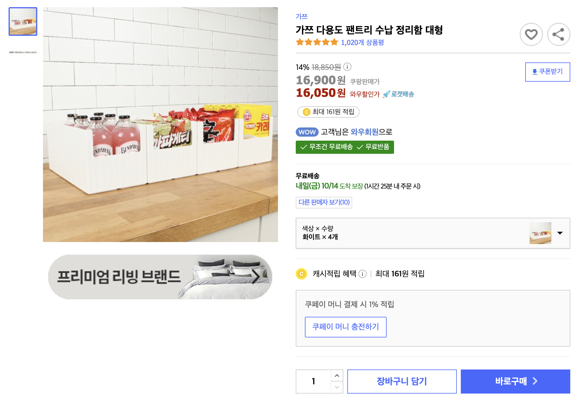 다른 수납 정리함들도 괜찮긴 한데 가쯔 팬트리 수납 정리함이 마음에 들어서 오늘 추가로 12개를 더 주문했습니다.