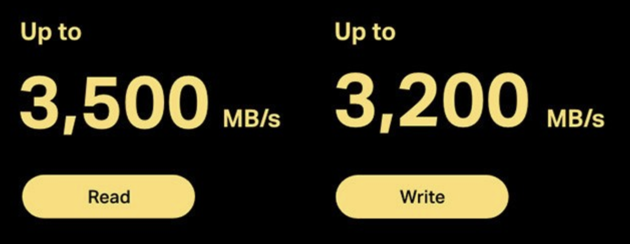 성능은 최대 읽기 3500MB/s, 쓰기 3000MB/s 정도 되네요.