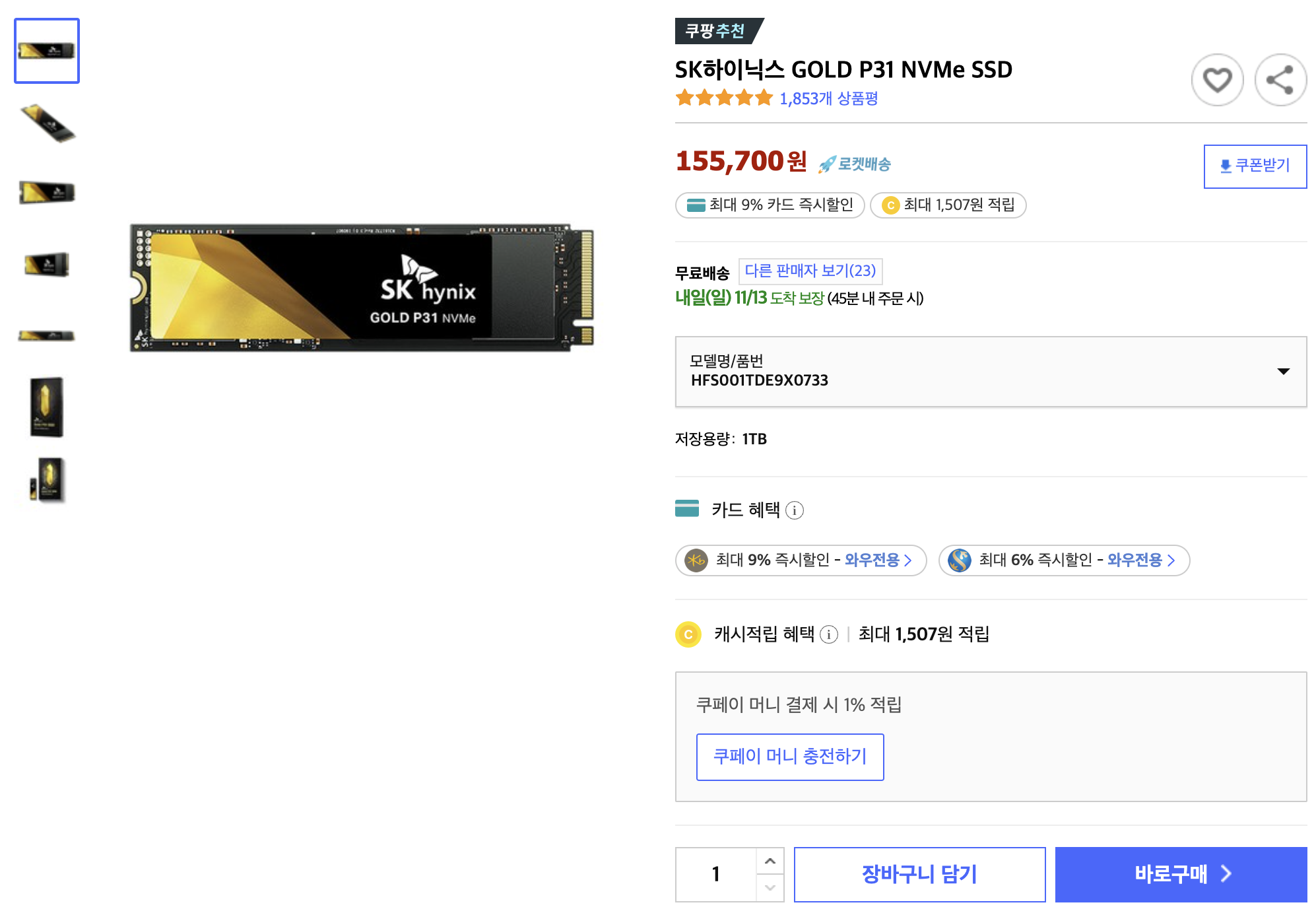 신기한 것은 쿠팡은 하이닉스 제품을 추천하고 있습니다.
