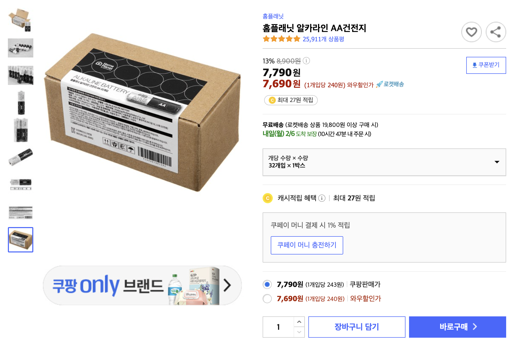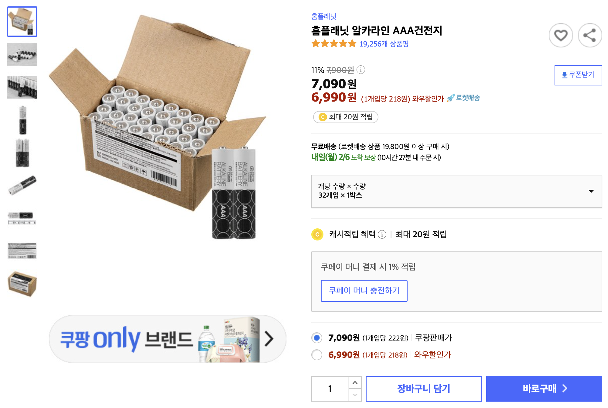 쿠팡 홈플래닛 알카라인 AAA건전지