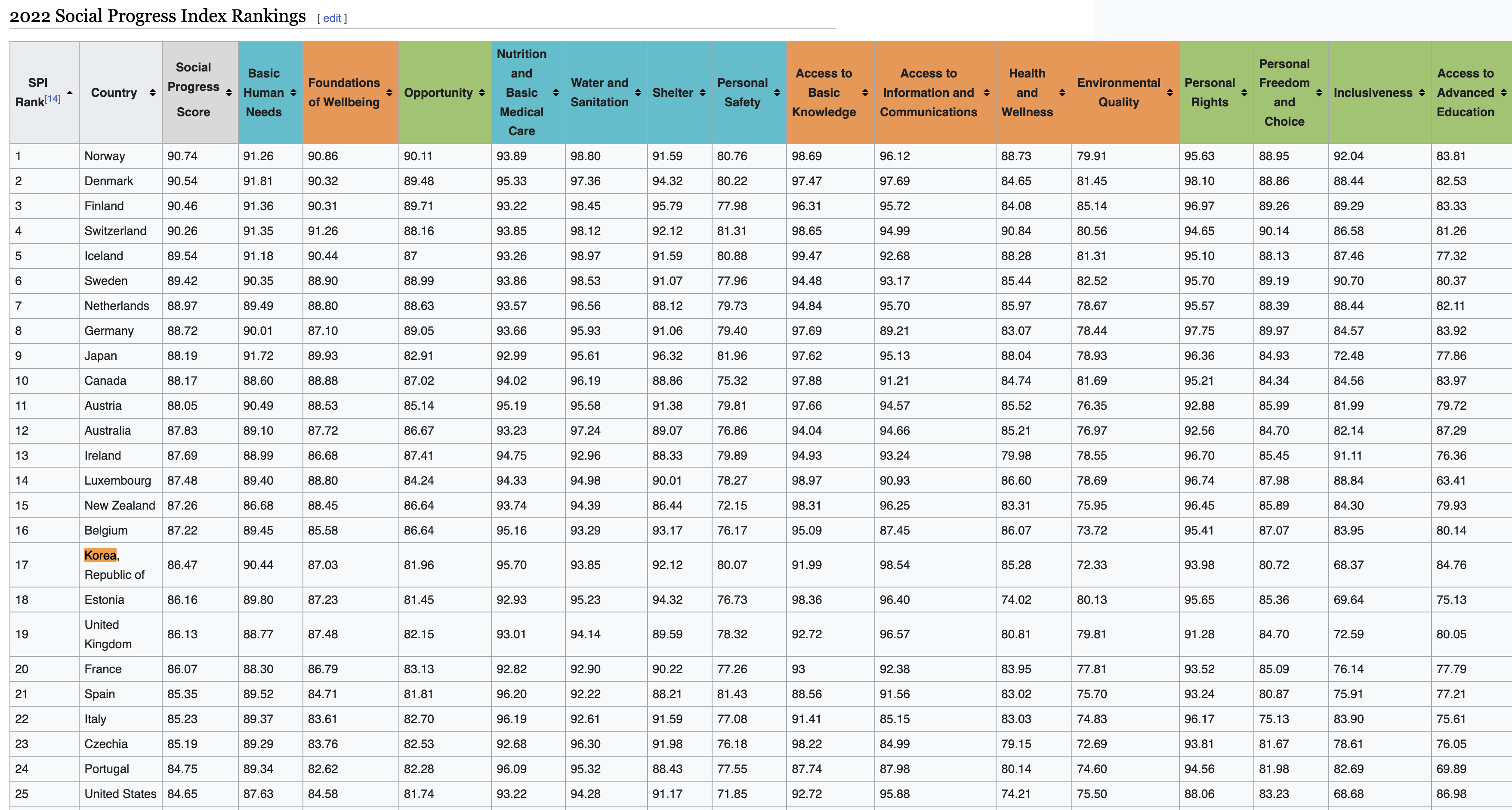 좋은 나라 순위. 2022 Social Progress Index Rankings