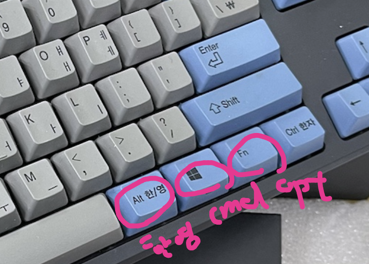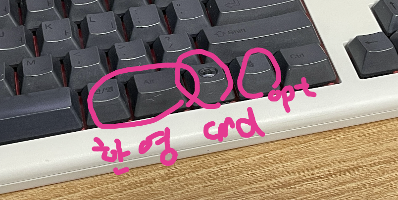 (2023.06.07 코멘트. cmd를 두 개 잡고 있었는데 cmd는 하나로 잡고 opt를 두 개 잡도록 변경했습니다. 왼쪽의 윈도키도 opt이기 때문에 오른쪽의 윈도키도 opt가 되는 것이 적절해 보였습니다. 문서키는 일단 opt로 유지하고 있는데 이거도 뭔가 바꾸는 게 좋을지는 고민되네요.)