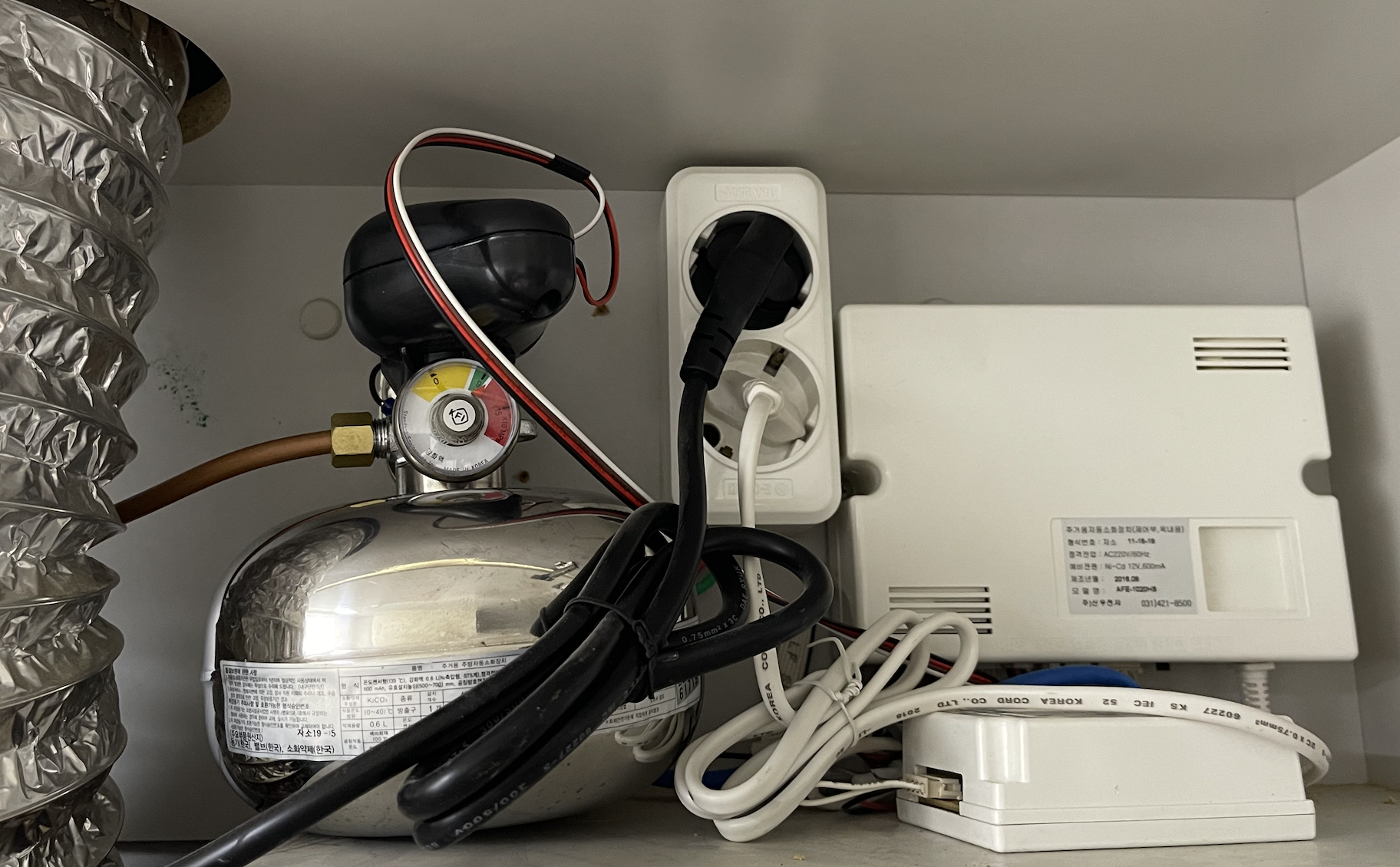 가스레인지 위쪽 장을 열어 보면 아래와 같은 모습을 볼 수 있습니다.