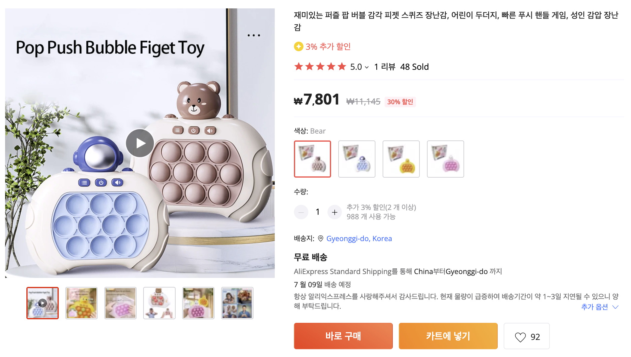 지인이 팝잇게임기라며 영상을 보내줬는데요. 이걸 보자마자 하나 구입해서 가지고 놀아봐야겠다는 생각이 들었습니다.