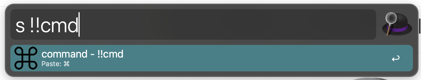 다음과 같이 OSX의 command 기호를 snippet 기능을 이용해서 손쉽게 입력할 수 있습니다. (저는 snippet 기능을 자주 사용하기 때문에 기본 키워드인 "snip"을 "s"로 줄여서 사용하고 있습니다.)