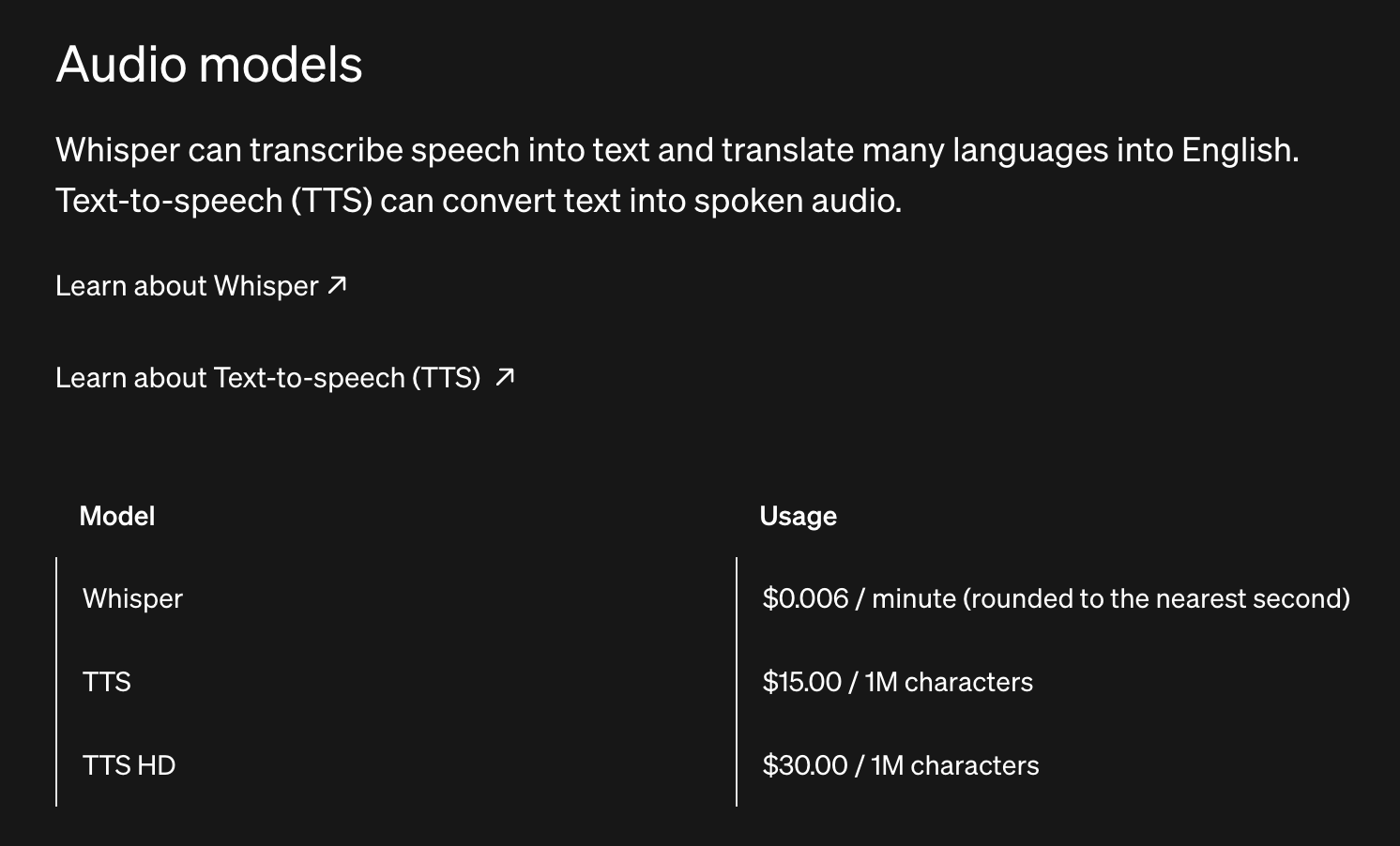 Whisper 모델을 OpenAI를 통해 사용하게 되면 1분에 $0.006입니다. 1시간짜리 음성을 인식시키게 되면 $0.36으로 500원 정도를 사용하게 됩니다. 비싼 가격은 아니지만 이것저것 사용하다 보면 비용을 무시하진 못할 것 같습니다.