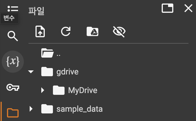 이 코드를 실행하면 google 계정과 연동 작업이 이루어지고, 연동 작업이 완료되면 Colab 파일 메뉴에 google drive의 내용이 나타나는 것을 볼 수 있습니다.