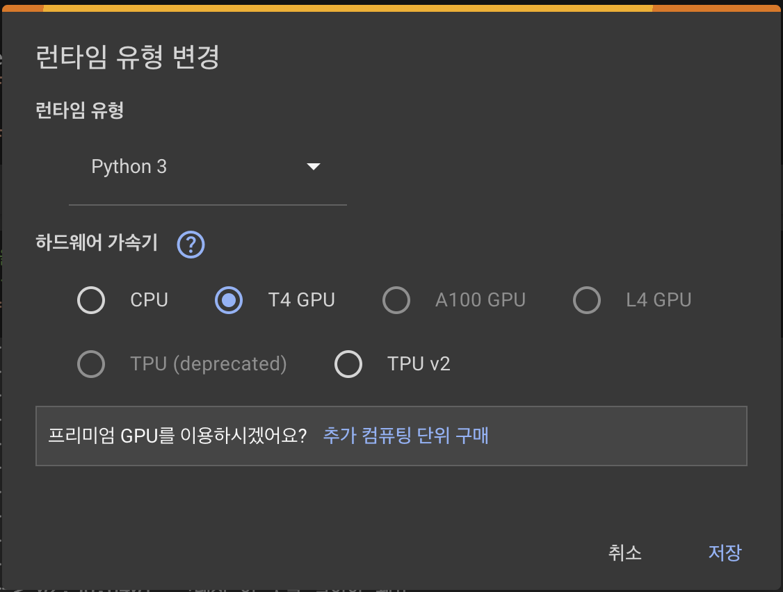 다행히도 Google Colab에서 무료로 GPU를 사용할 수 있도록 제공해 주고 있기 때문에 손쉽게 사용해 볼 수 있습니다.