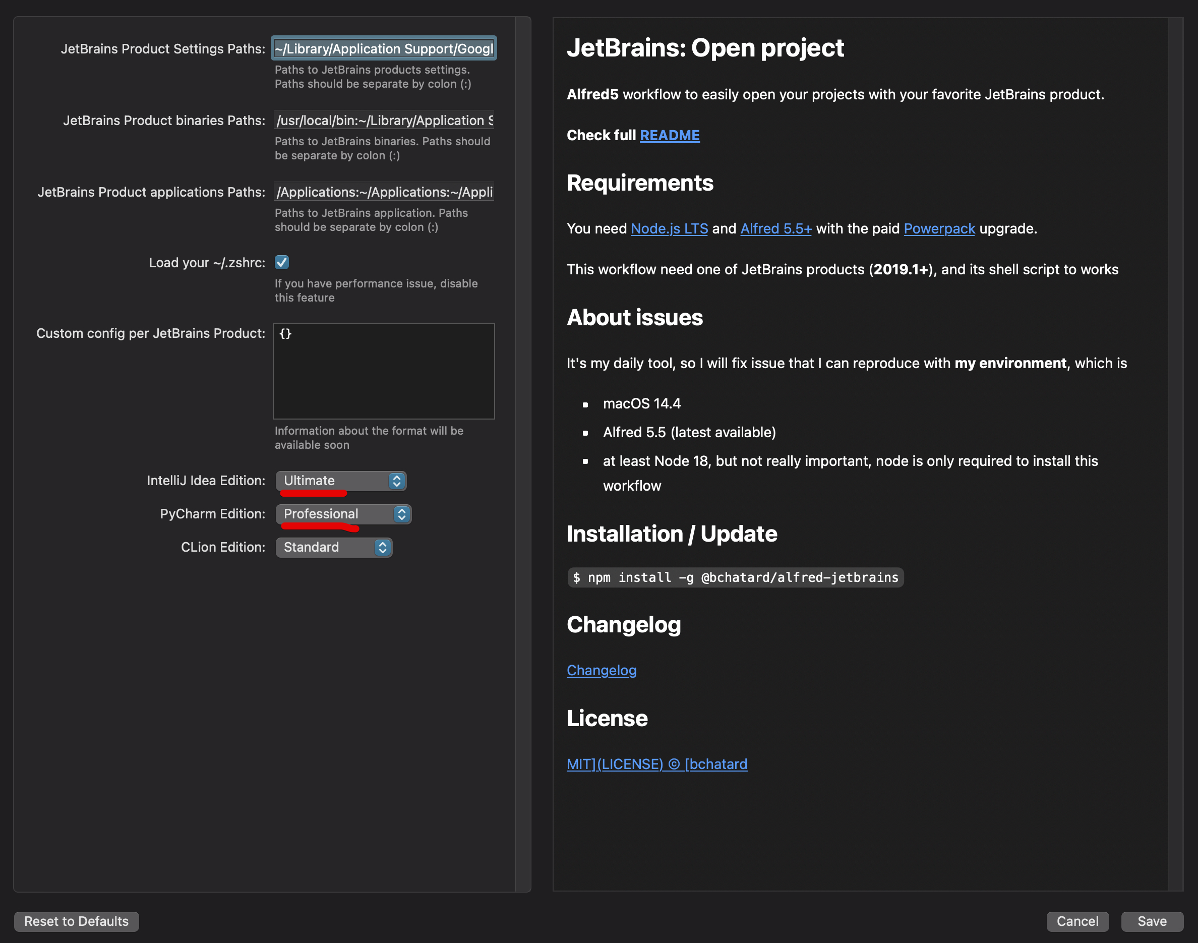 GitHub - bchatard/alfred-jetbrains: Alfred5 workflow to easily open your projects with your favorite JetBrains product.