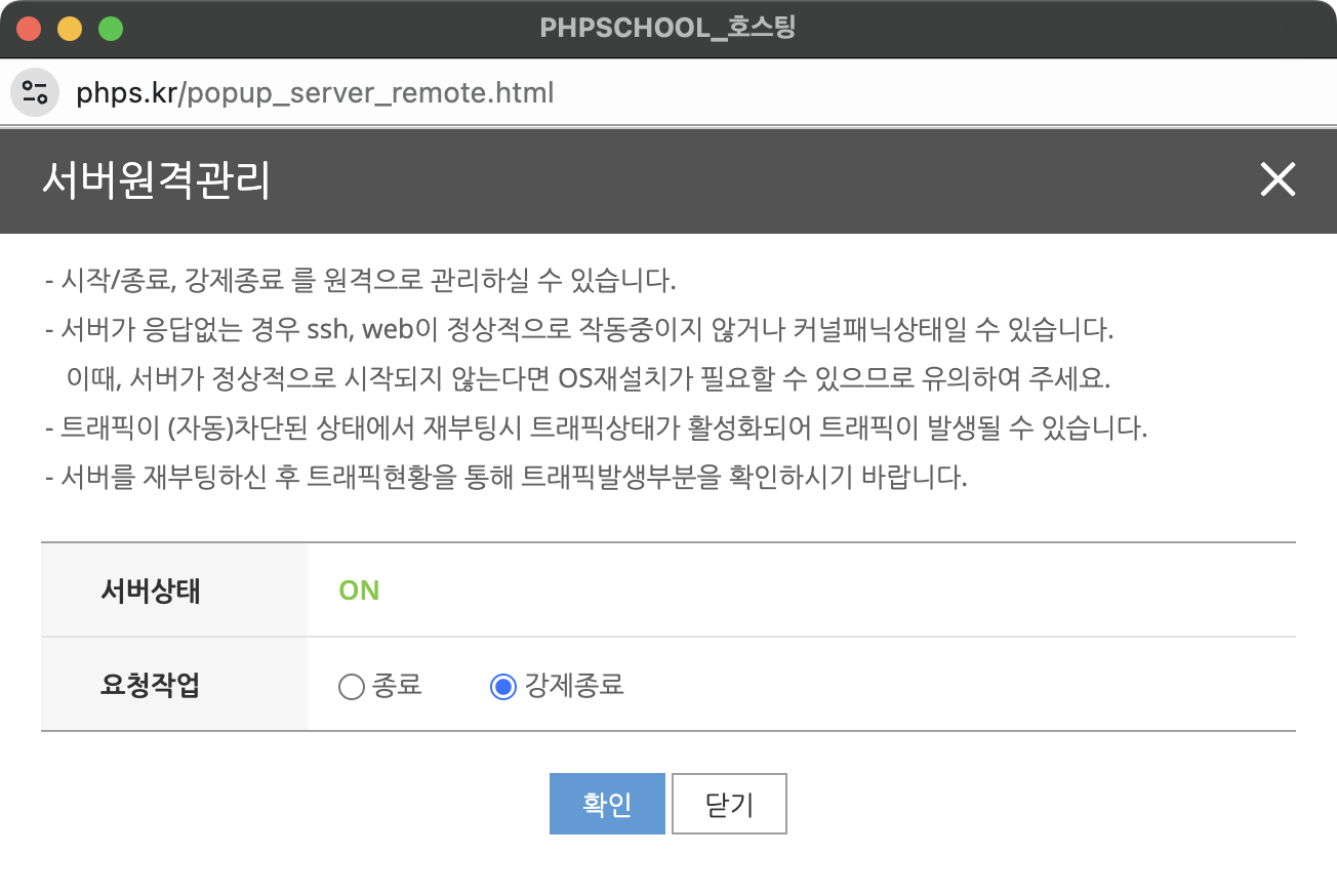 스쿨호스팅(phps.kr) 가상서버호스팅 재시작 하는 방법